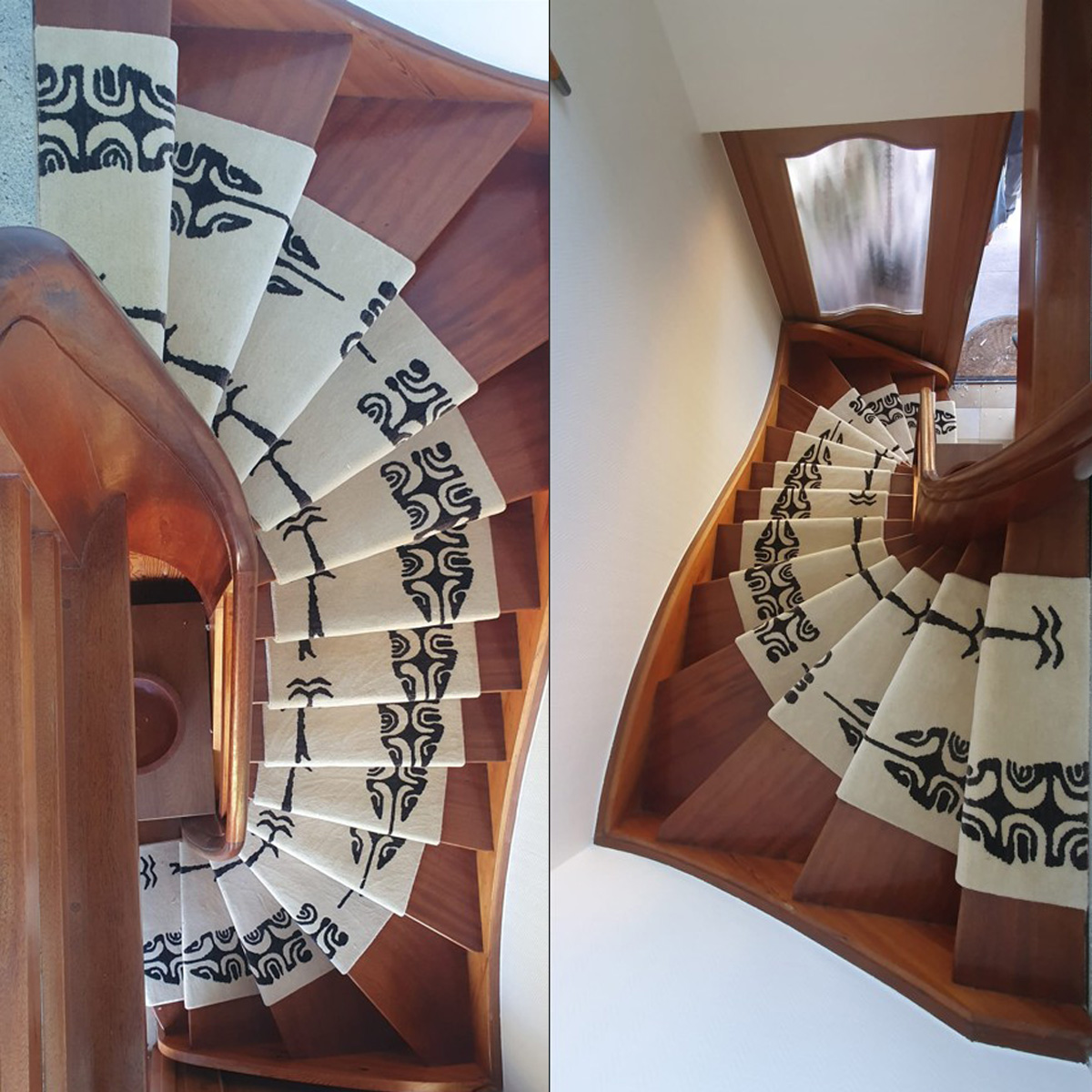 Gefertigt aus reiner Hochlandschurwolle in traditioneller Handarbeit und mit höchster Knüpfdichte, verbindet der Läufer langlebige Qualität mit individueller Gestaltung. Nach der professionellen Verlegung durch unseren Verlegemeister zeigt sich das Ergebnis in voller Schönheit: Der Läufer fügt sich perfekt in die schöne Holztreppe ein und verleiht dem Eingangsbereich eine besondere Ausstrahlung.