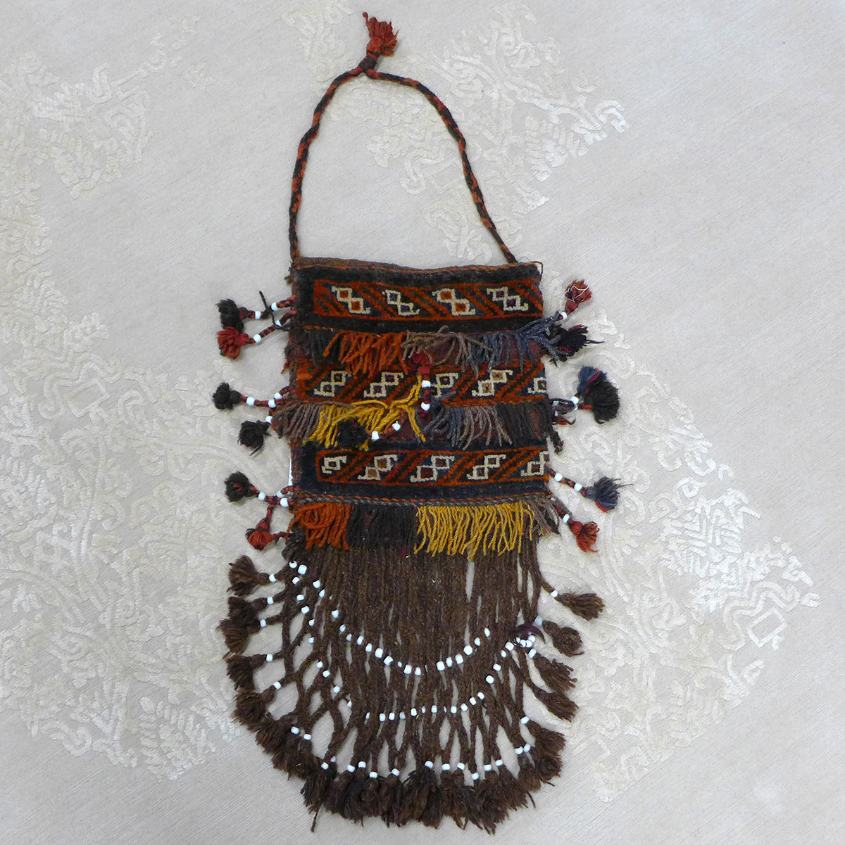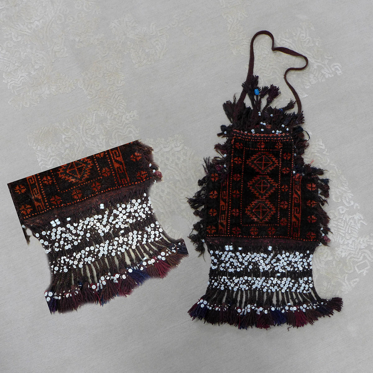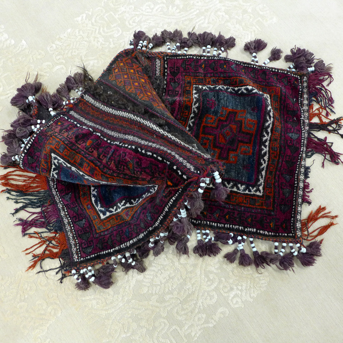Die persischen Salztaschen sind unvergleichliche Zeitzeugen, die eine Geschichte von Reisen, Handel und Tradition erzählen. Jedes Exemplar ist ein Unikat – gewebt mit Erfahrung, getragen von Generationen und gealtert mit Würde.